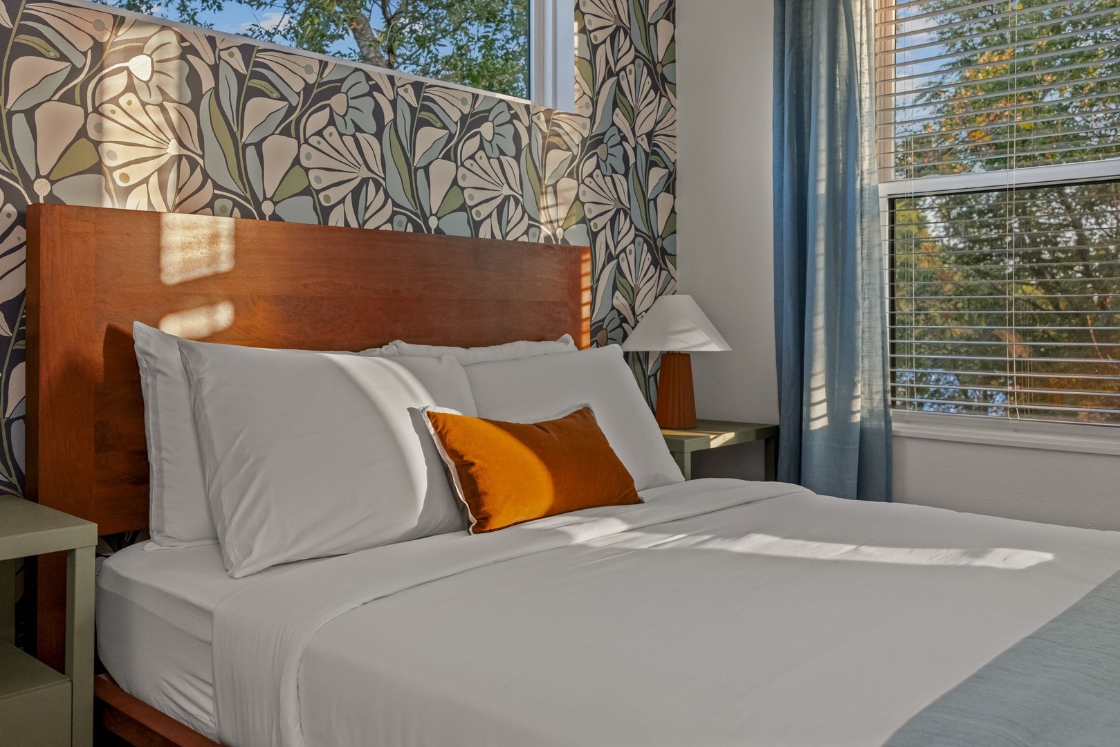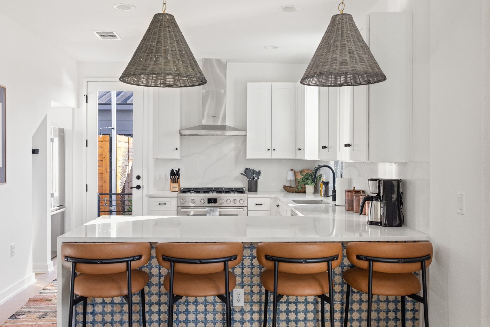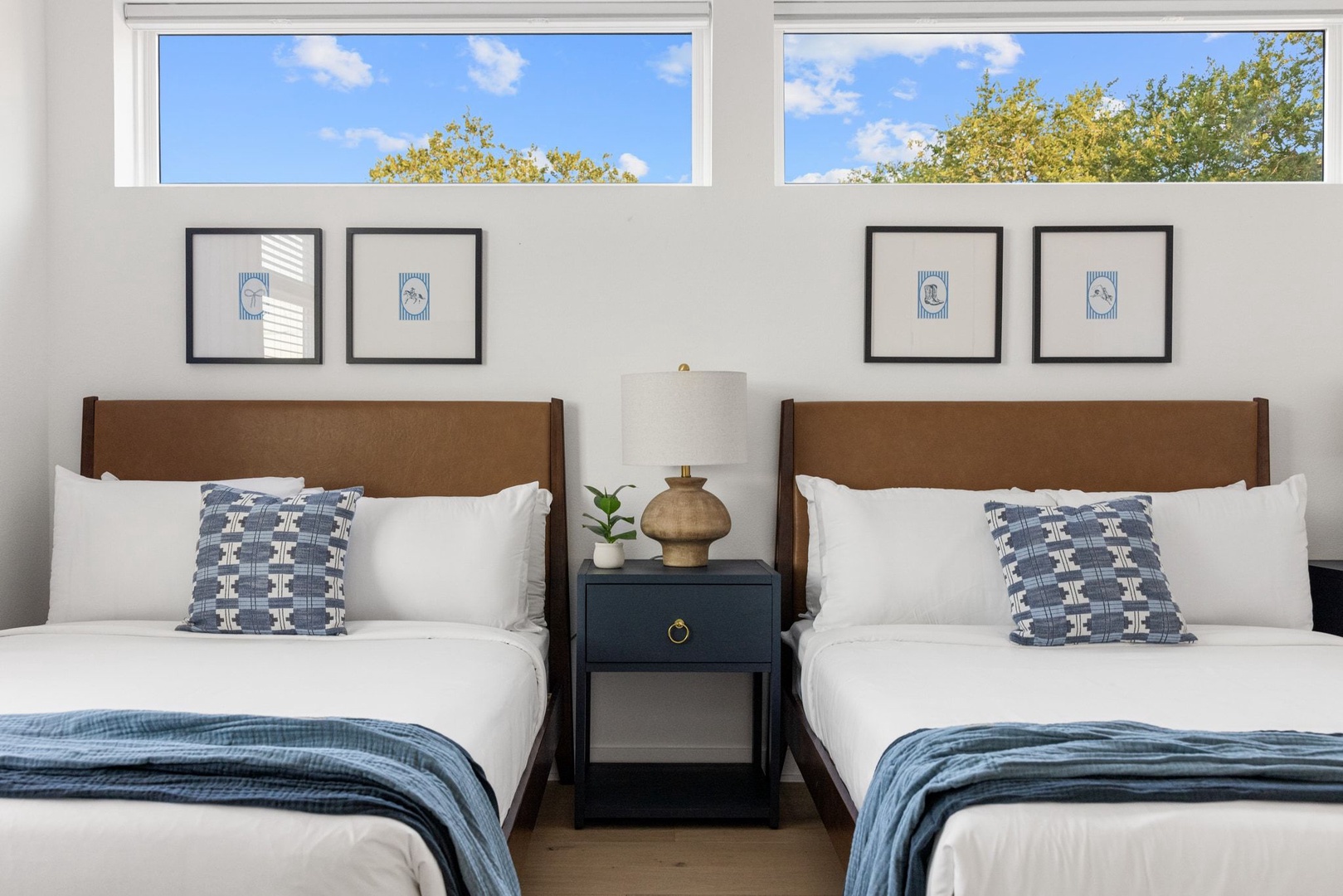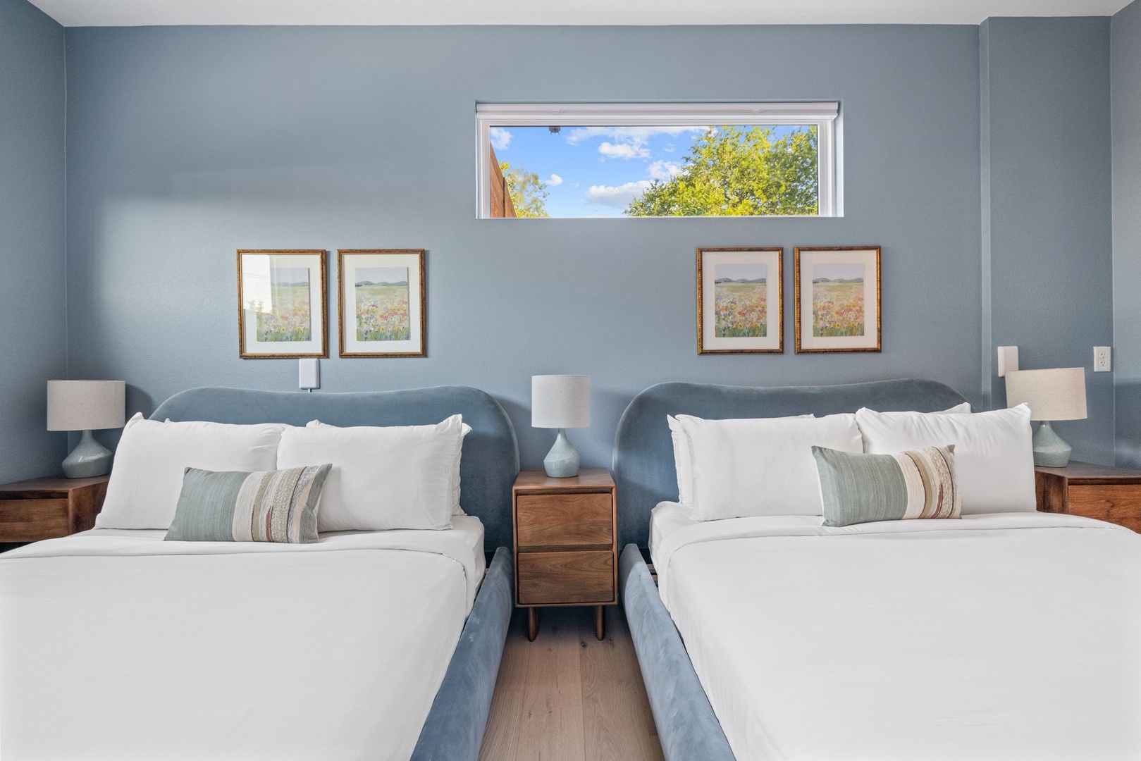 The bright kitchens are well equipped to tackle all your group meals, with modern stainless steel appliances, essential cookware, and plenty of counter space. The large windows let in plenty of natural light as you prepare your meals. Help yourself to the fully-stocked coffee bars to help start your days in Austin off right.