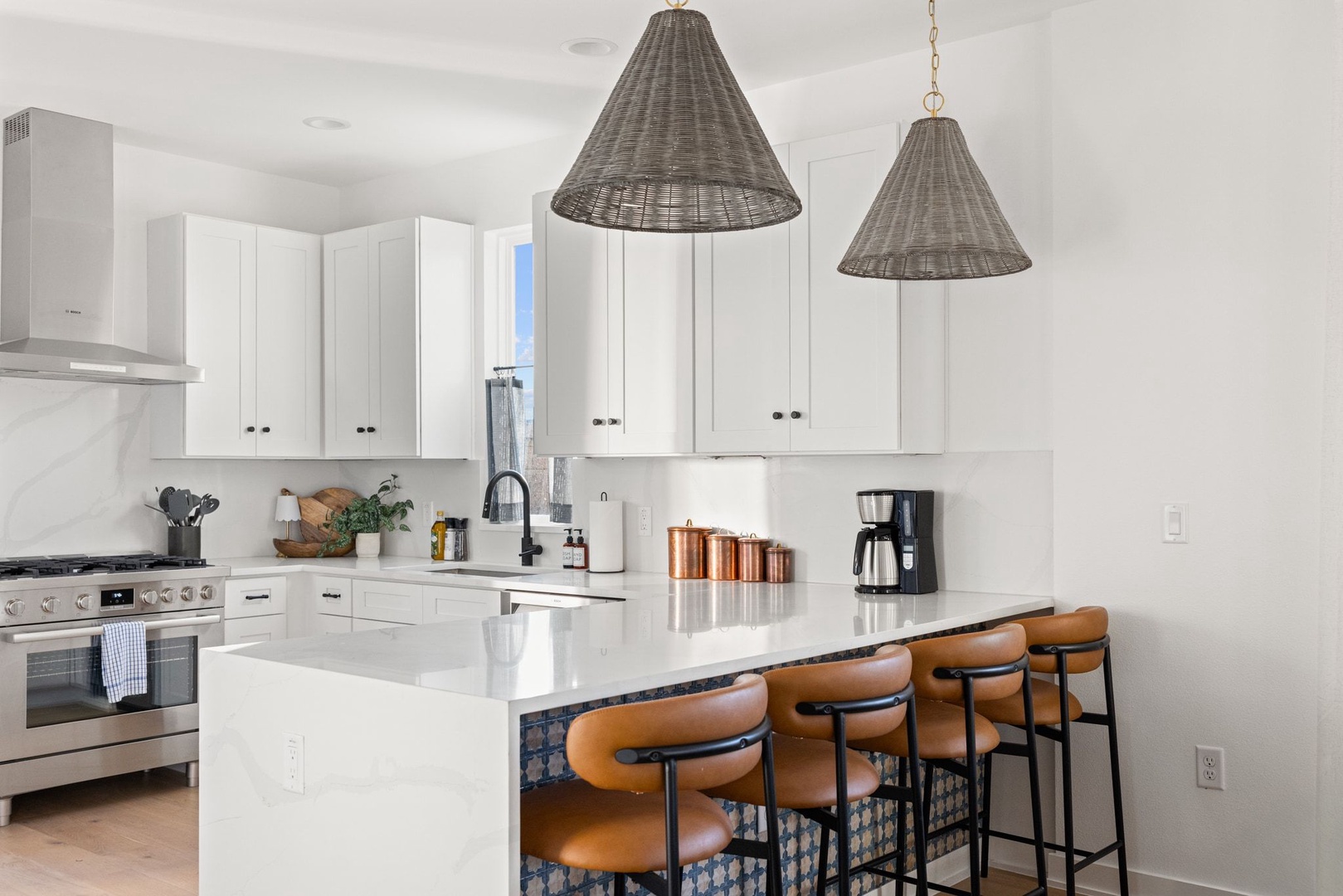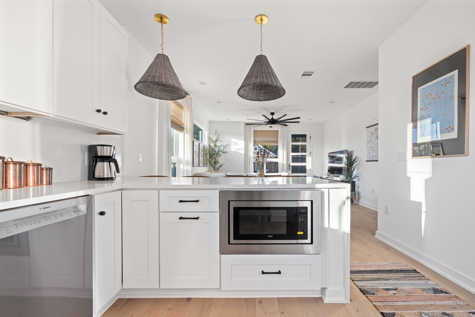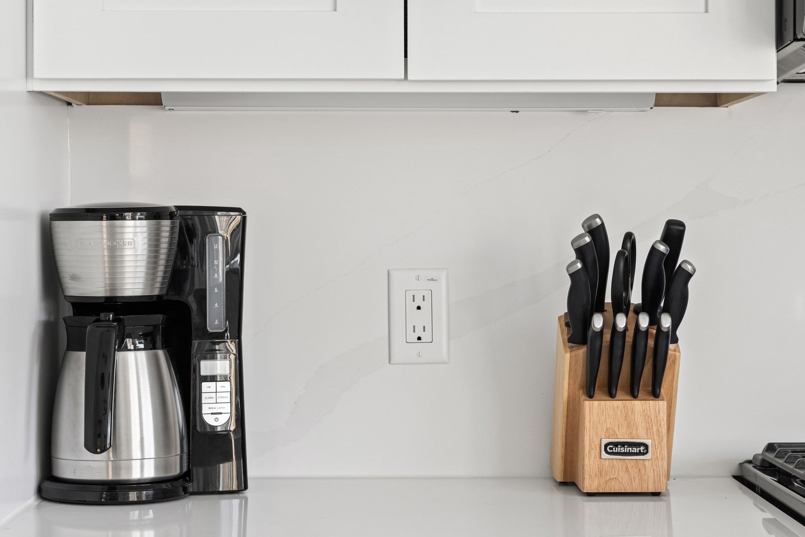The bright kitchens are well equipped to tackle all your group meals, with modern stainless steel appliances, essential cookware, and plenty of counter space. The large windows let in plenty of natural light as you prepare your meals. Help yourself to the fully-stocked coffee bars to help start your days in Austin off right.