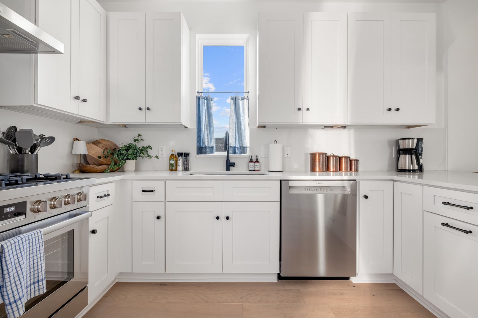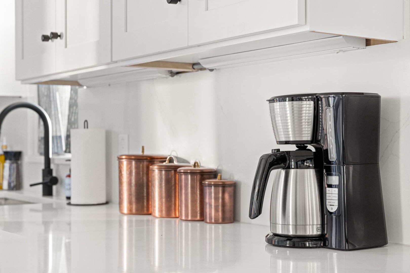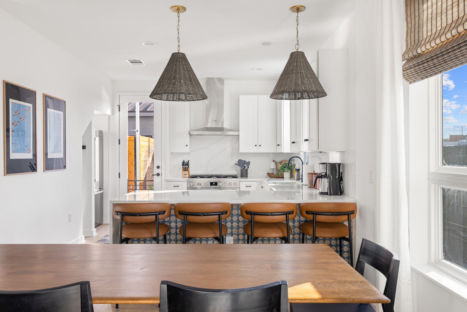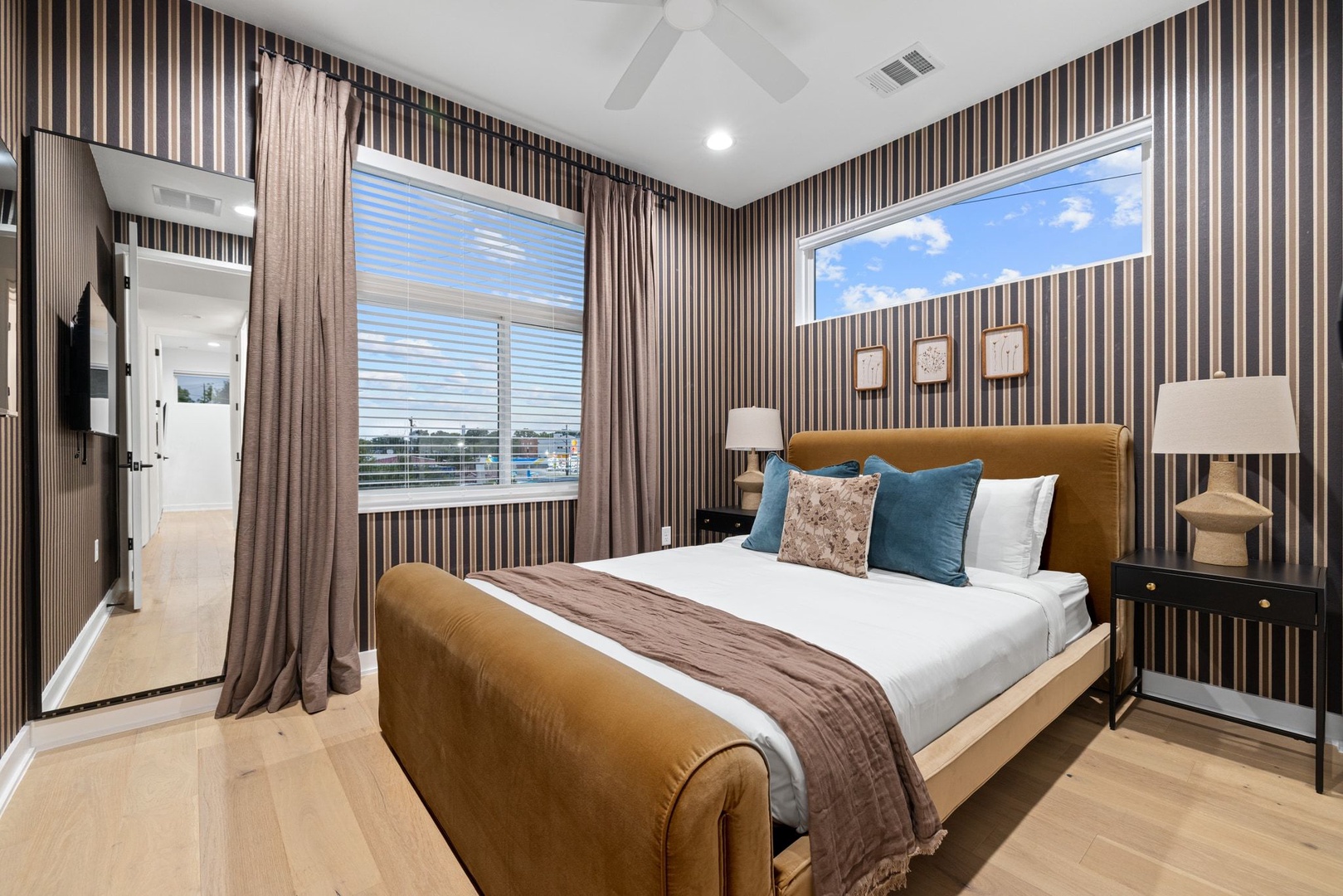 The bright kitchens are well equipped to tackle all your group meals, with modern stainless steel appliances, essential cookware, and plenty of counter space. The large windows let in plenty of natural light as you prepare your meals. Help yourself to the fully-stocked coffee bars to help start your days in Austin off right.