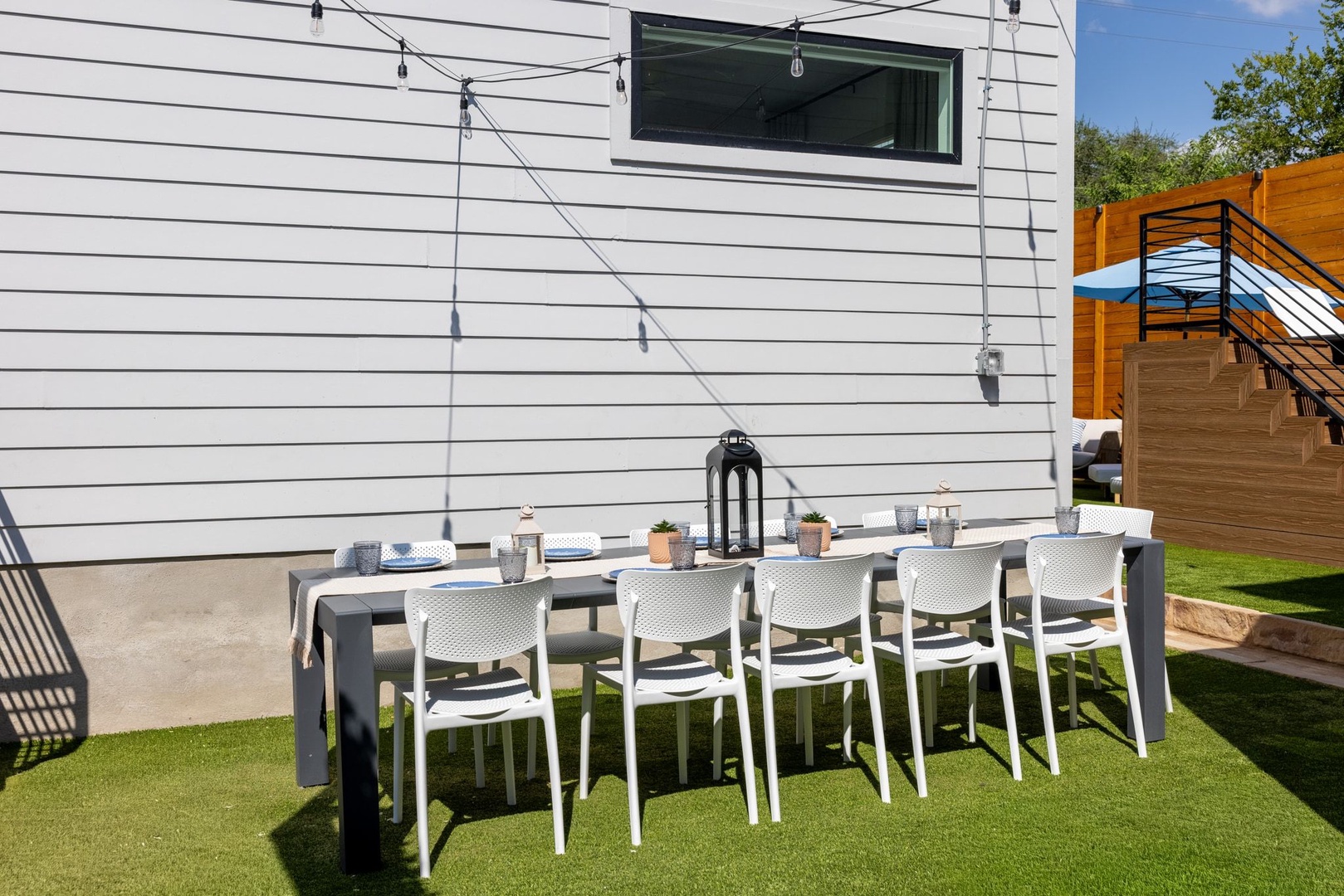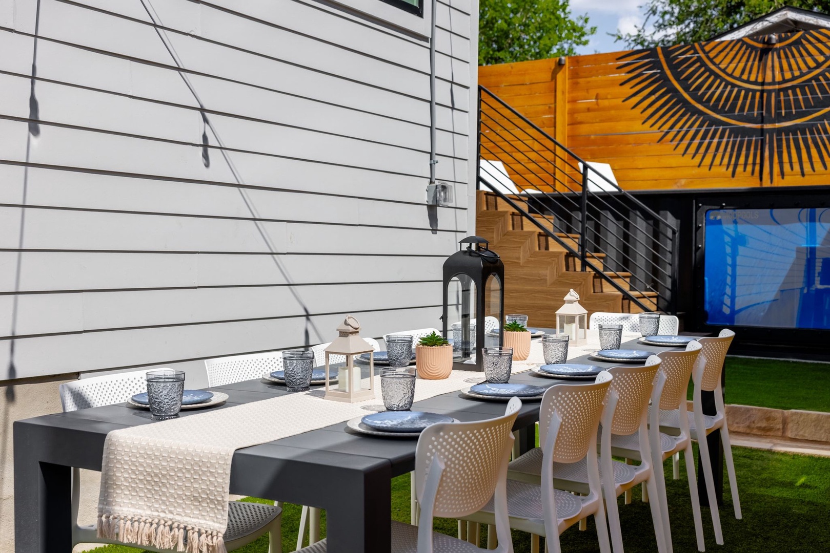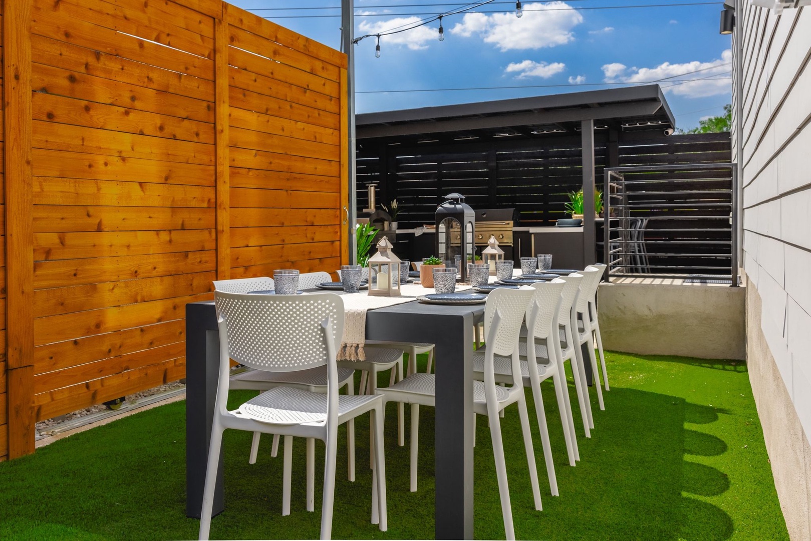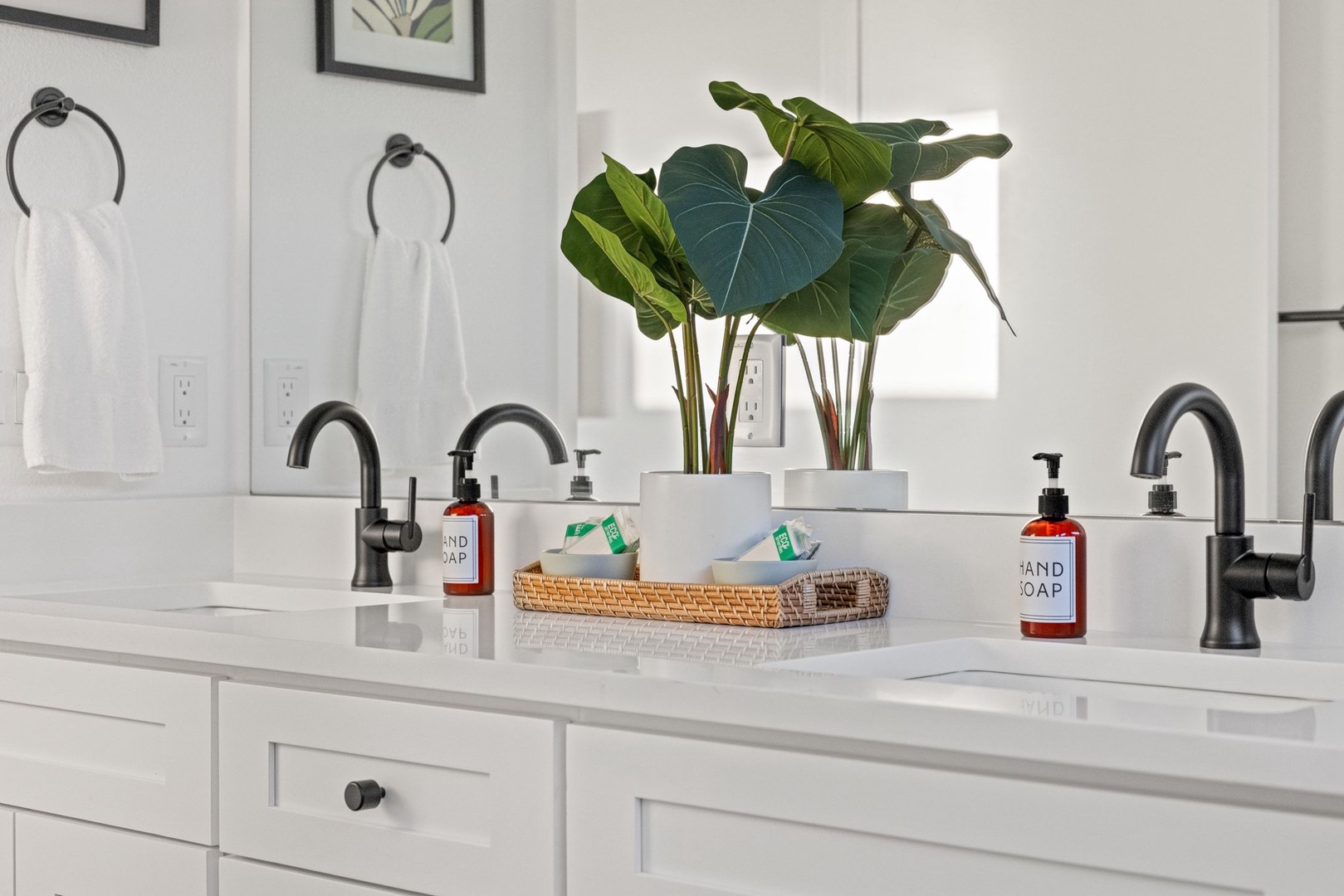 The homes feature 7 sleek full bathrooms - Thanks to the complimentary toiletries, fresh towels, and on-site laundry, there’s no need to overpack for your trip to Austin.
