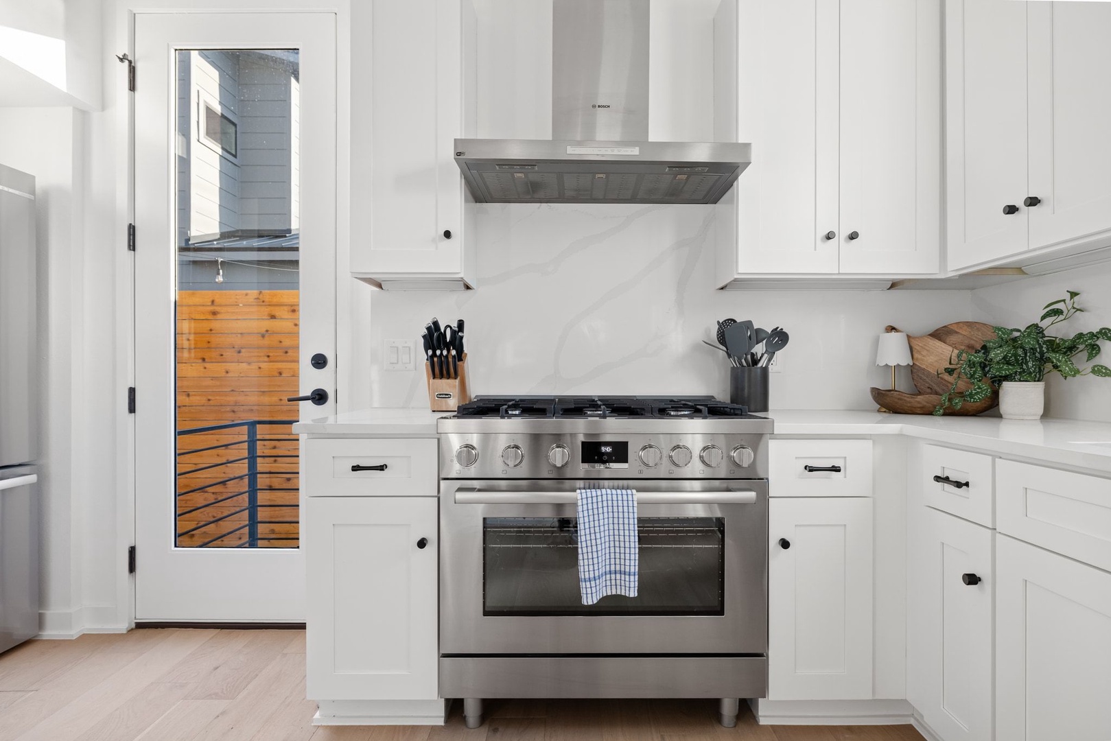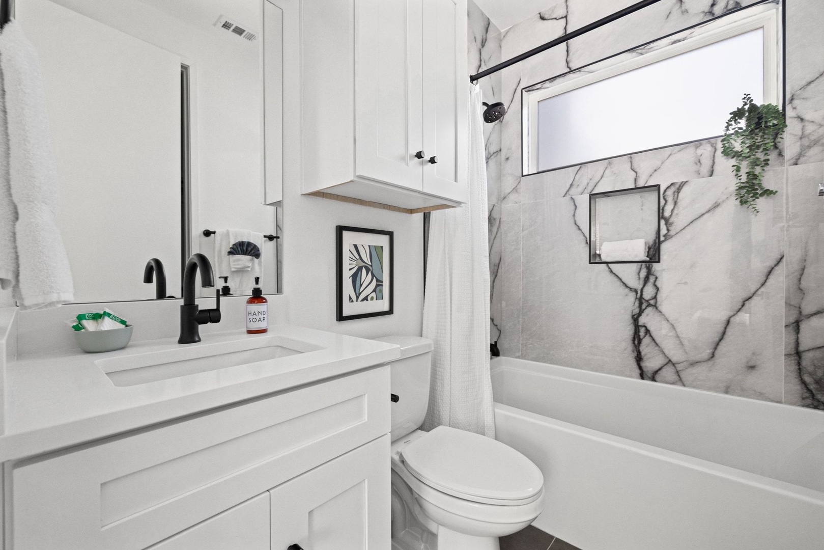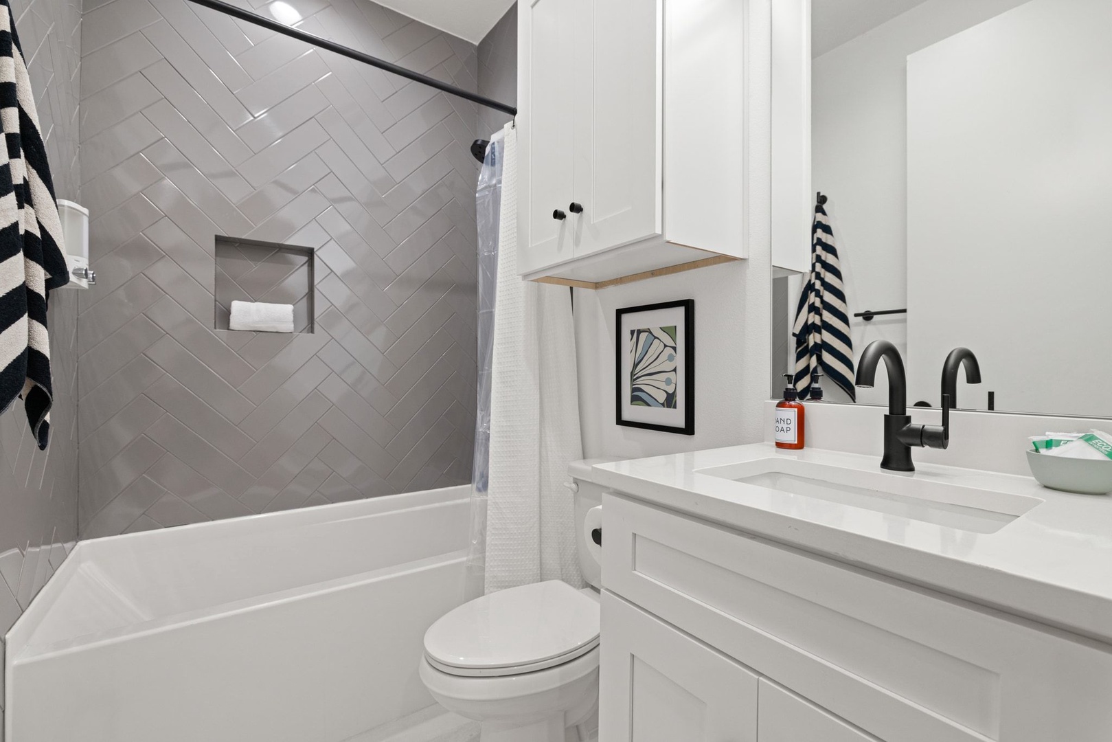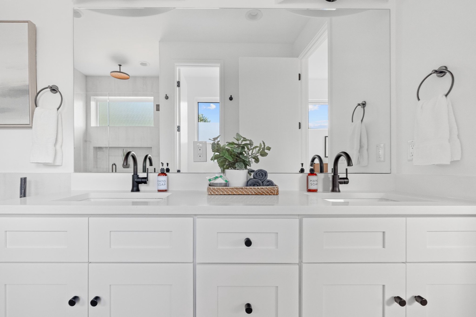 The homes feature 7 sleek full bathrooms - Thanks to the complimentary toiletries, fresh towels, and on-site laundry, there’s no need to overpack for your trip to Austin.